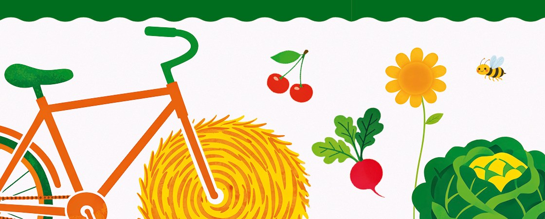 Le Tour des fermes, le 7 juin 2026 de 10h00 à 18h00, à vélo ou à pied, suivez les flèches.